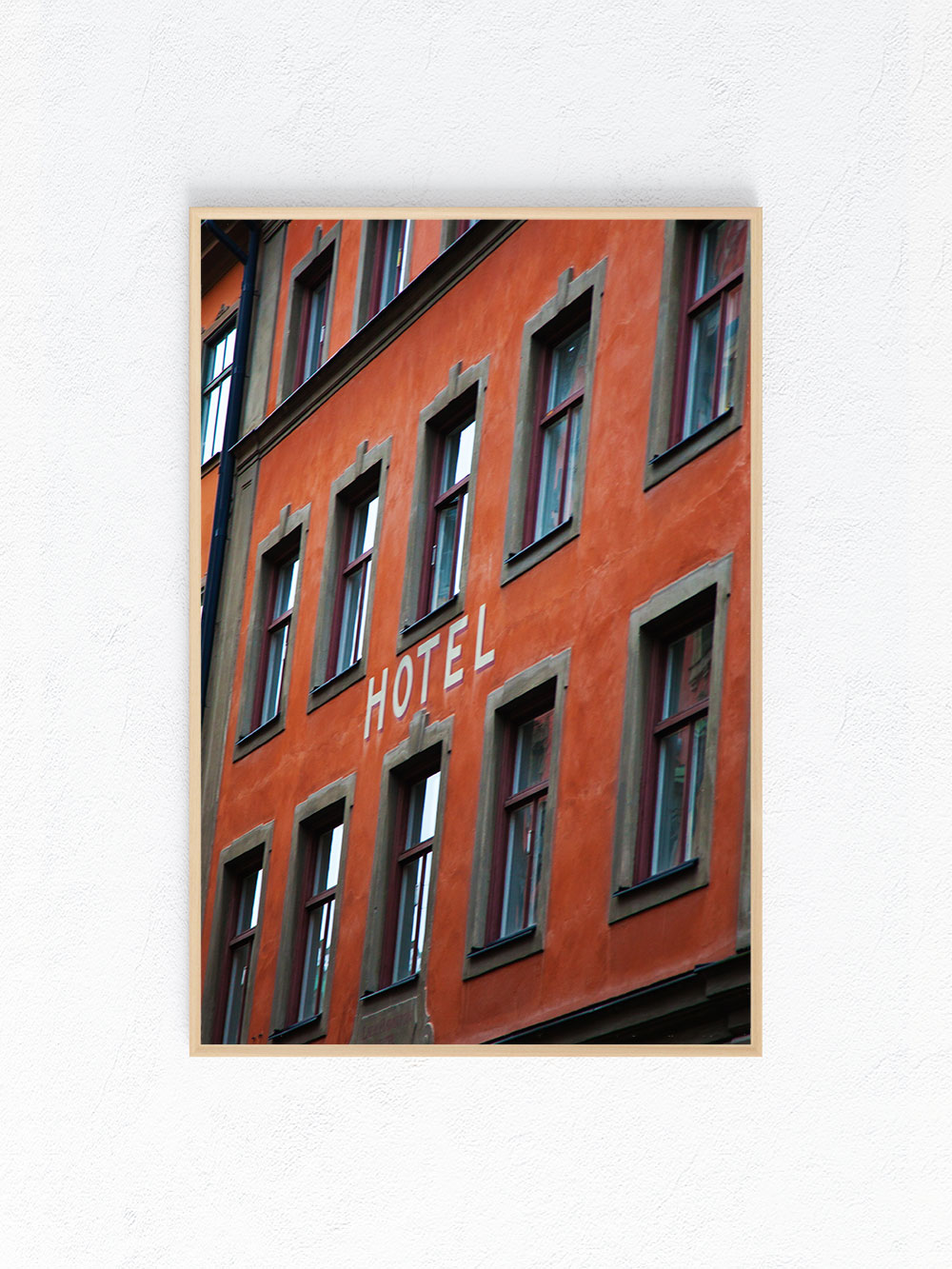 In this picture, you can see a lovely orange window in Stockholm’s Old Town, with the word Hotel written on the wall. I love how old buildings carry stories, and how little details spark the imagination. This image captures the warm heartbeat of the city and pairs beautifully with the bicycle poster.